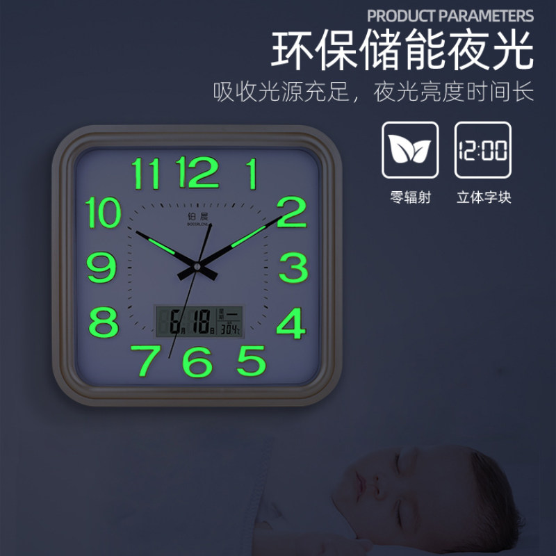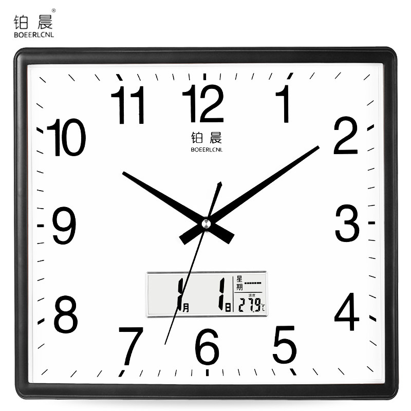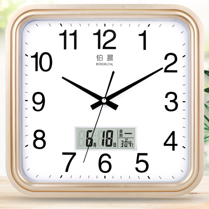 Square electronic wall clock living room mute clock home with personality creative fashion art calendar quartz clock hanging on the wall