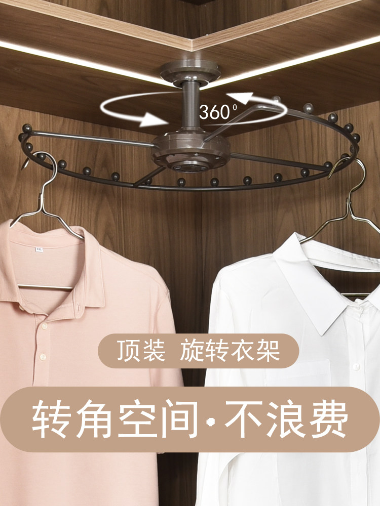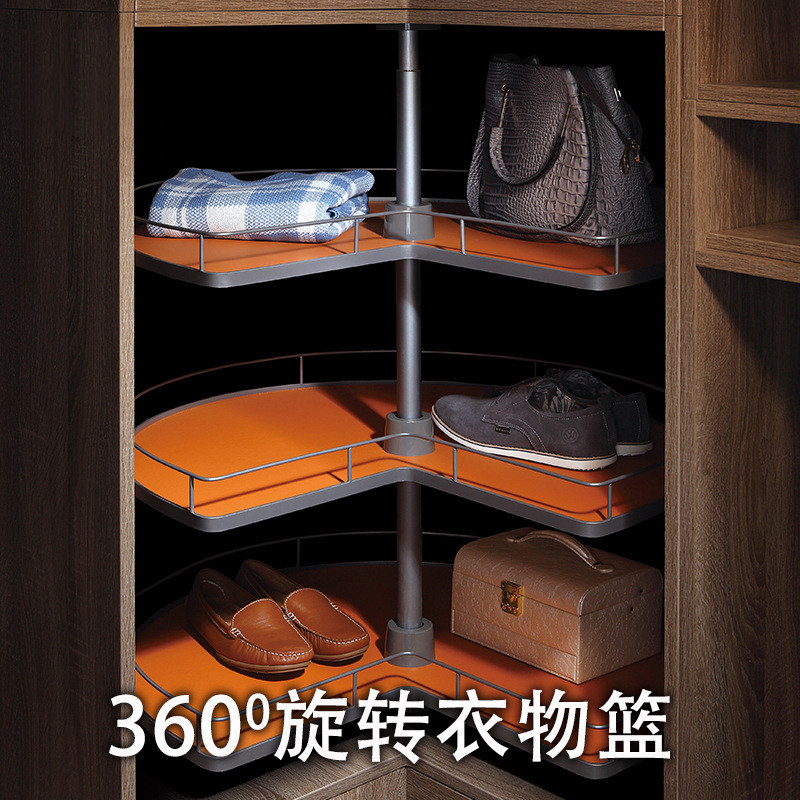 Wardrobe corner pants rack Cloakroom 360 degree rotating hanger Multi-functional clothes pants rack Wardrobe pull basket shelf