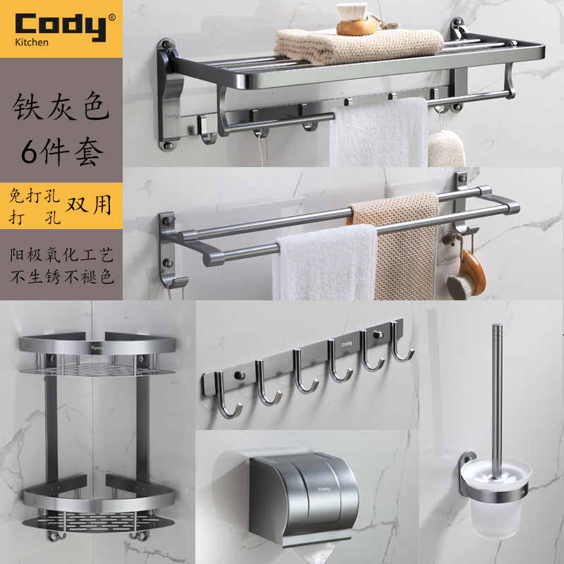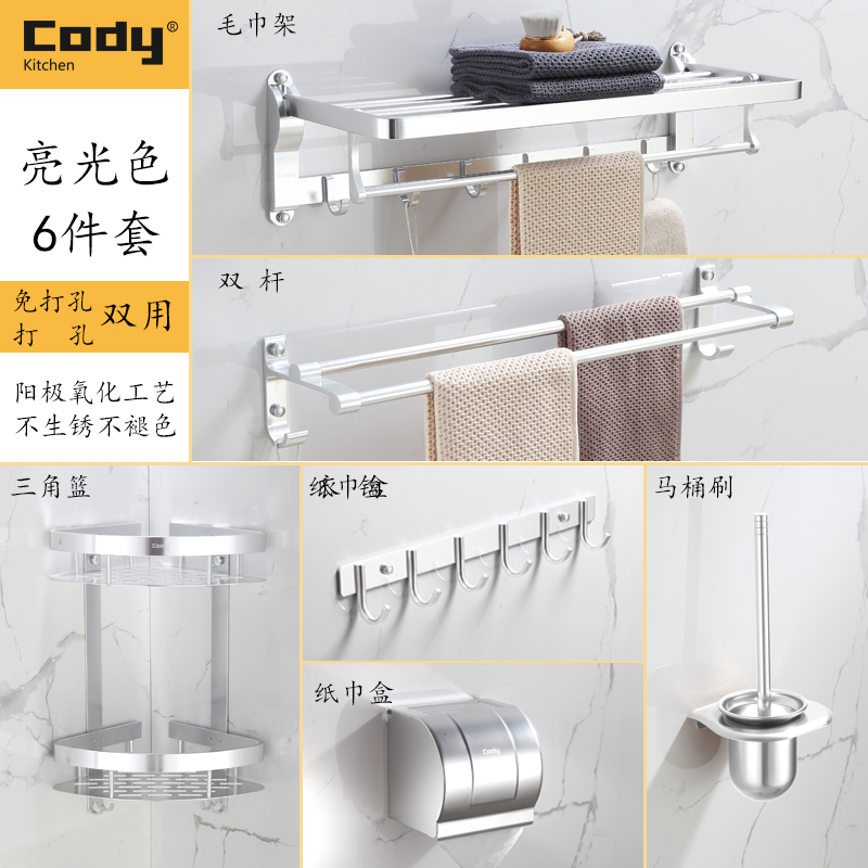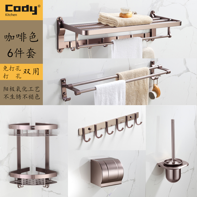 085 Champagne 6-piece set 085 Brown 6-piece set 085 Iron gray 6-piece set 085 Bright color 6-piece set 085 Champagne bath towel rack Champagne double-layer triangular basket Fragrance