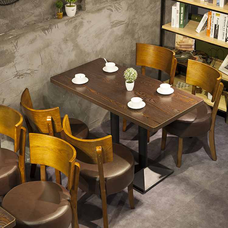 Retro theme restaurant milk tea shop barbecue shop solid wood chair cold drink shop dessert shop simple card seat table and chair combination