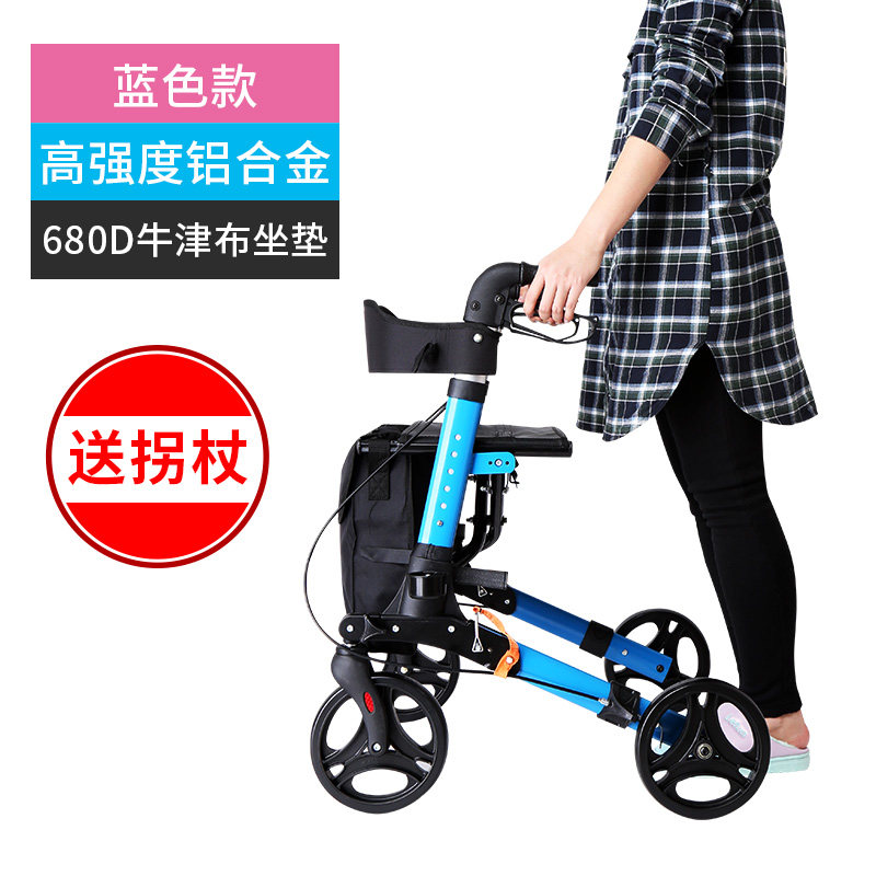 Yad elderly walker trolley trolley with wheel assist walker four-foot walker with physical and mental handicallower aluminium alloy seat