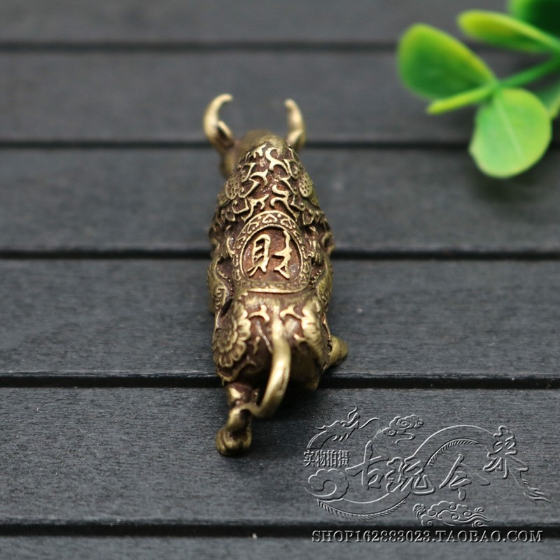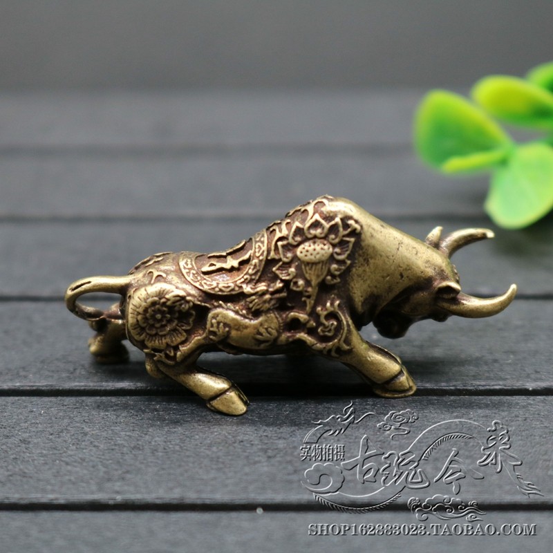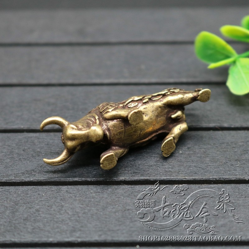 Pure brass solid twelve Zodiac zodiac bull Bull car keychain pendant antique collection