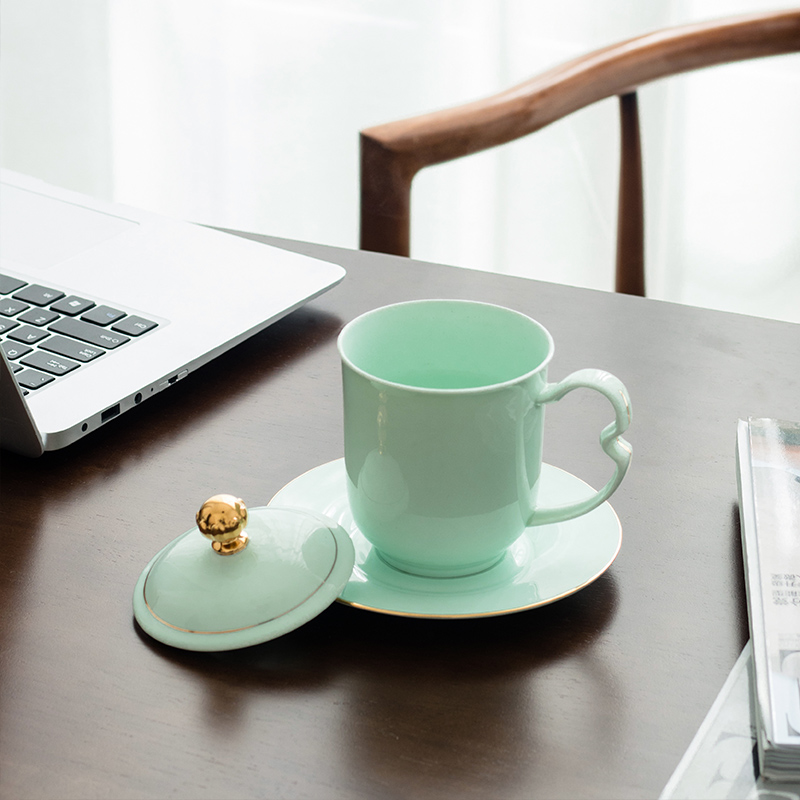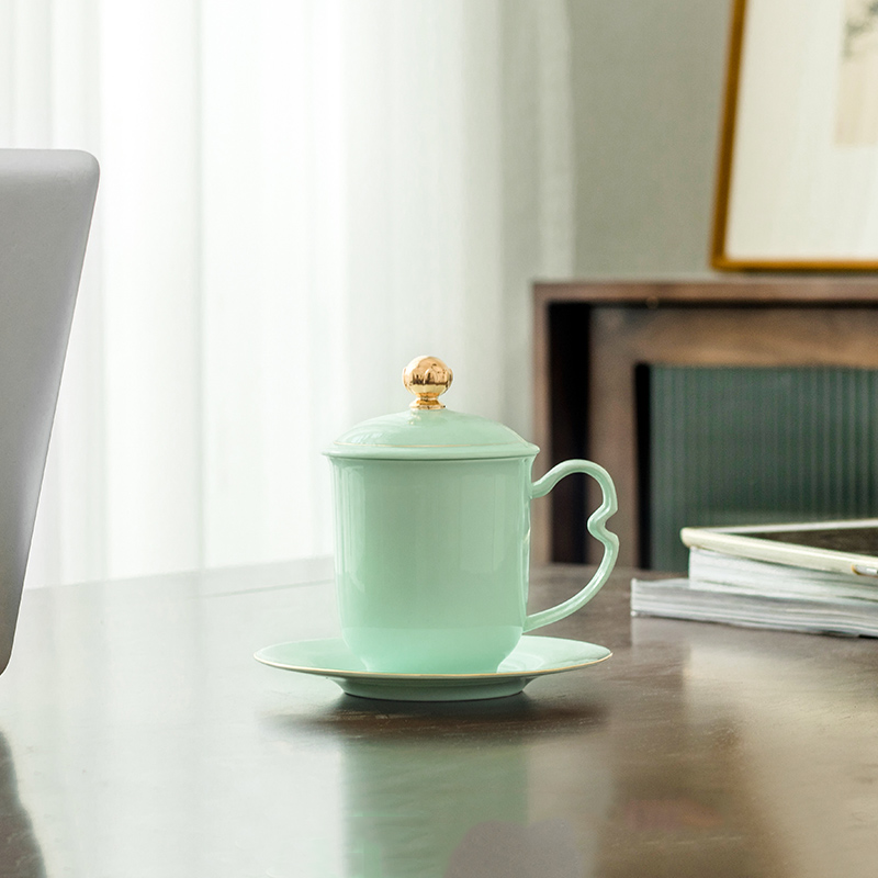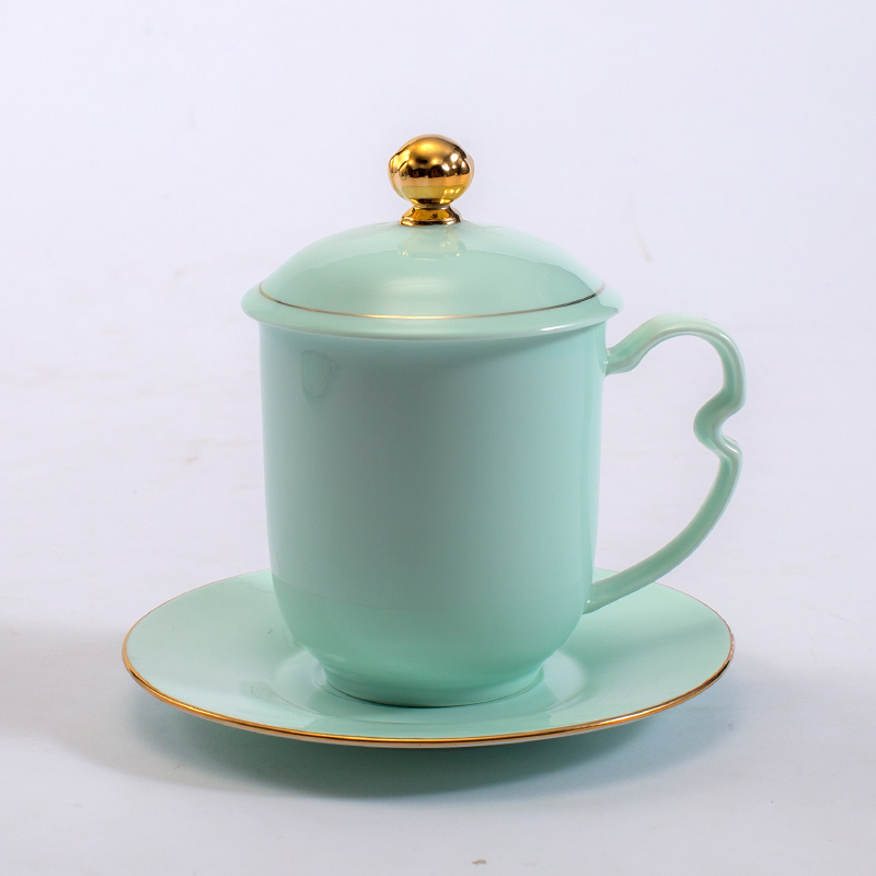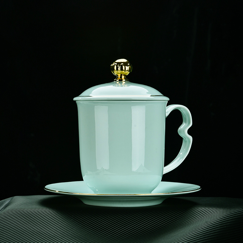 Jingdezhen ceramic cup teacup celadon office with lid drinking tea single large-capacity mug boss meeting cup