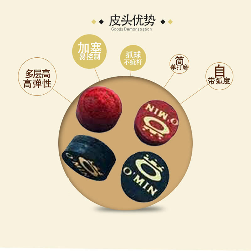 Omin Mystery billiard club Multi-layer leather head Slovakian small head rod Gasser Billiard accessories Snooker club Chinese black eight