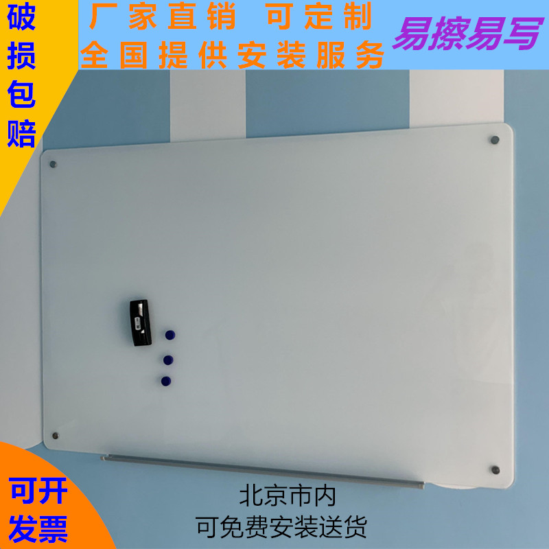 cj steel chemical magnetic glass whiteboard customizable office teaching training rounded corner explosion-proof baking varnish black plate meeting room Home upscale children writing board wall-mounted writing whiteboard Beijing bag installation