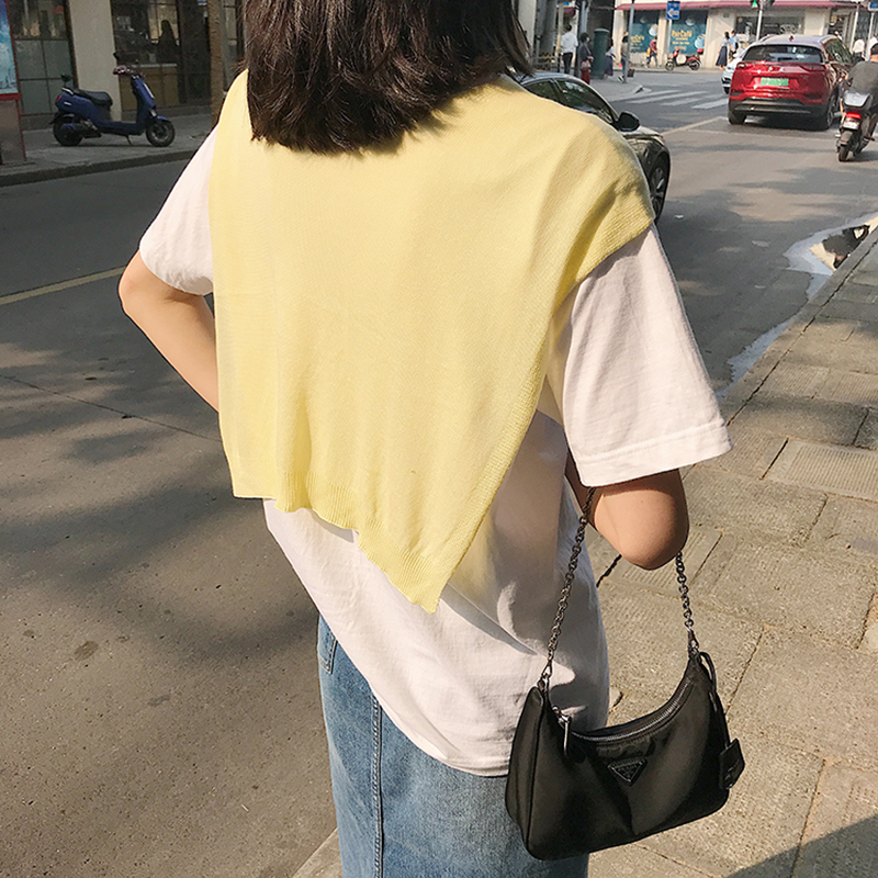 The Korean version of the outer lap of a slim fit dress with children autumn and children autumn and fresh pure color knit fake two cloak and shoulder damp