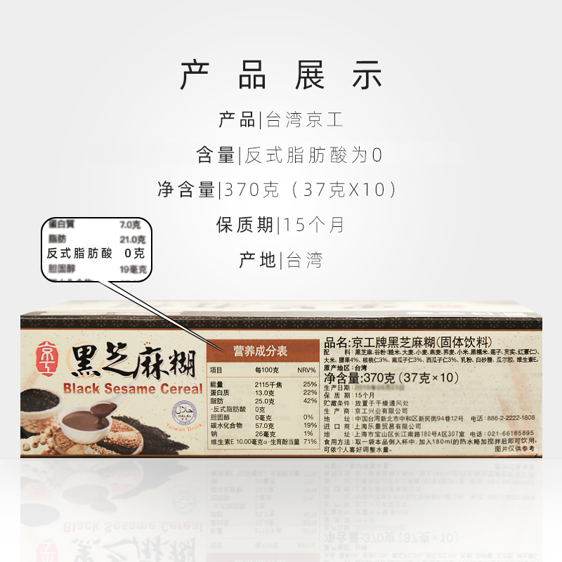 China Taiwan's Beijing Workers Black Sesame Burnt 10 bags * 37g Sam's same black sesame Burnt Walnut Breakfast Bagged 370g
