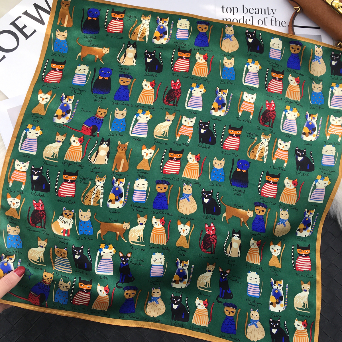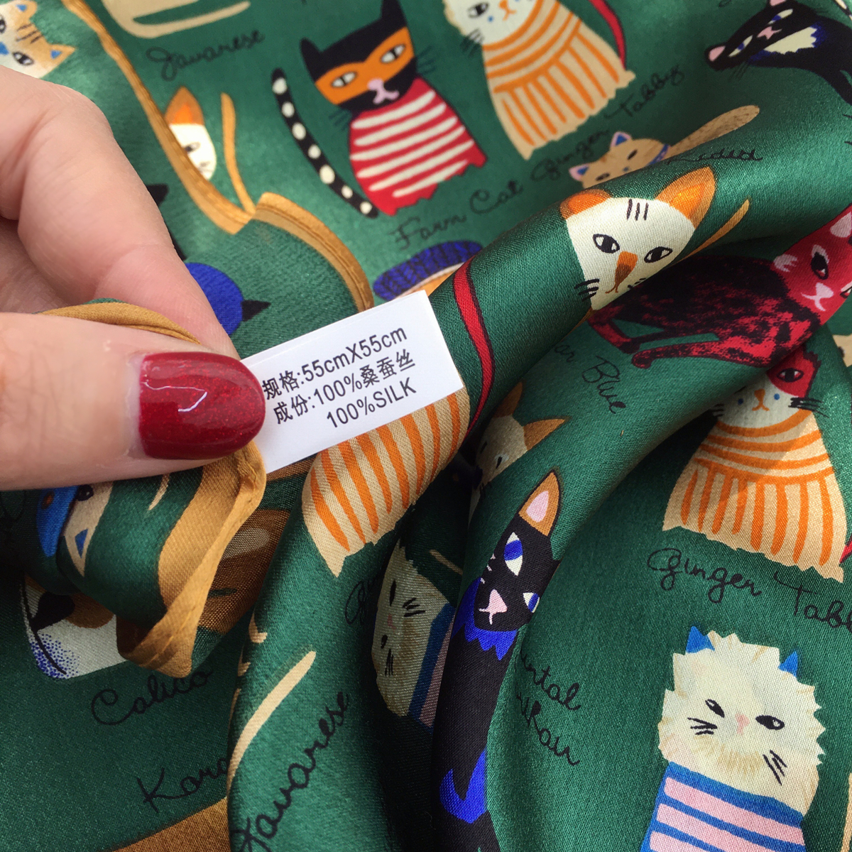 Small scarf for women Summer Korean version 100 hitch cartoon kitty 100% mulberry silk real silk scarves decorated scarves with small flecks