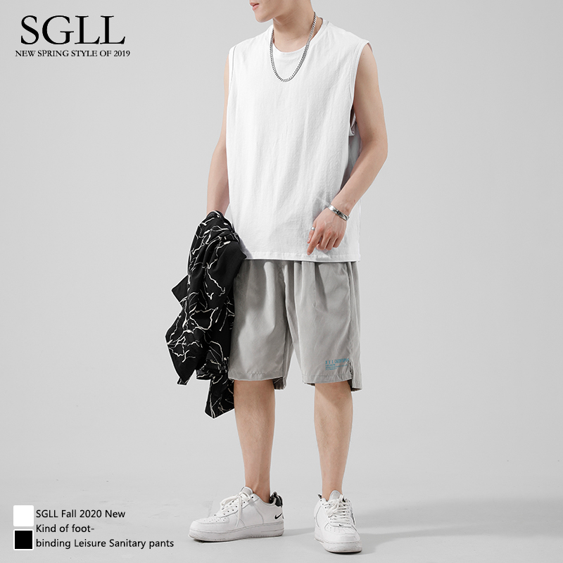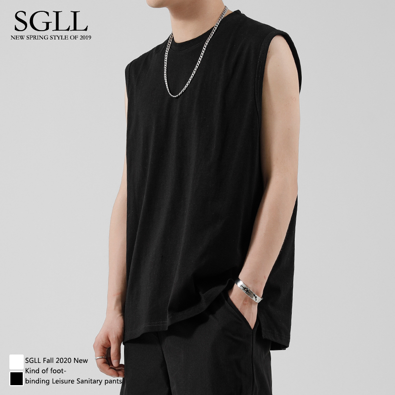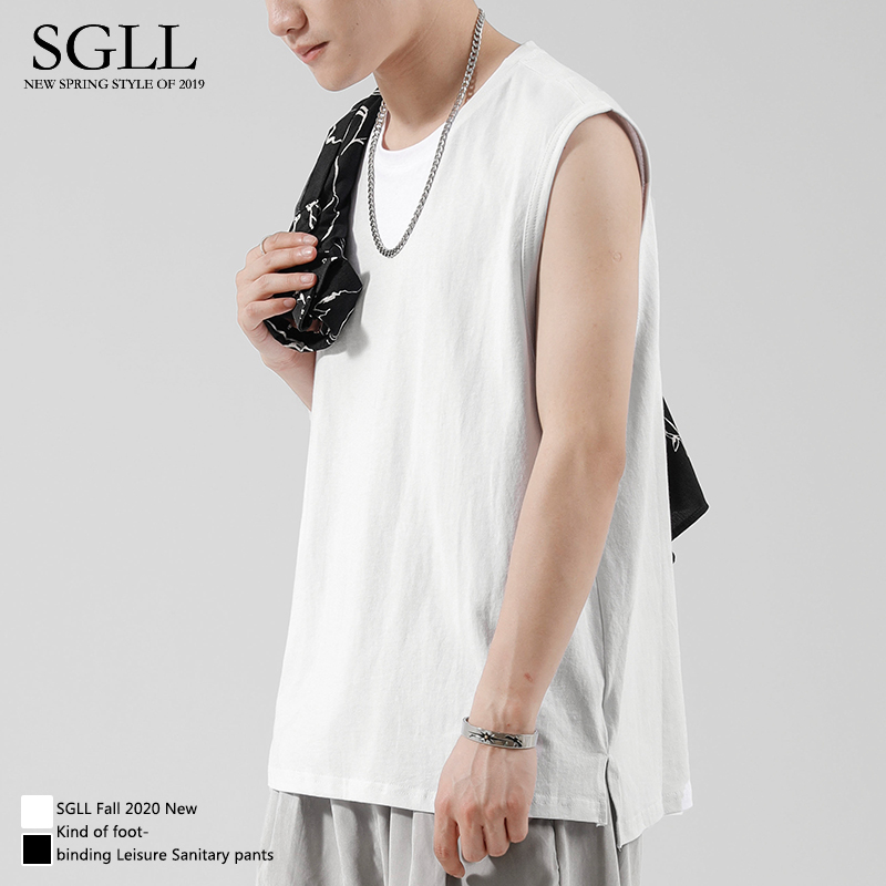 Vest Men Tide Pure Cotton Kan Shoulder summer outwear Machia Chaobots Sports Loose Men Fitness Basketball Sleeveless T-shirt