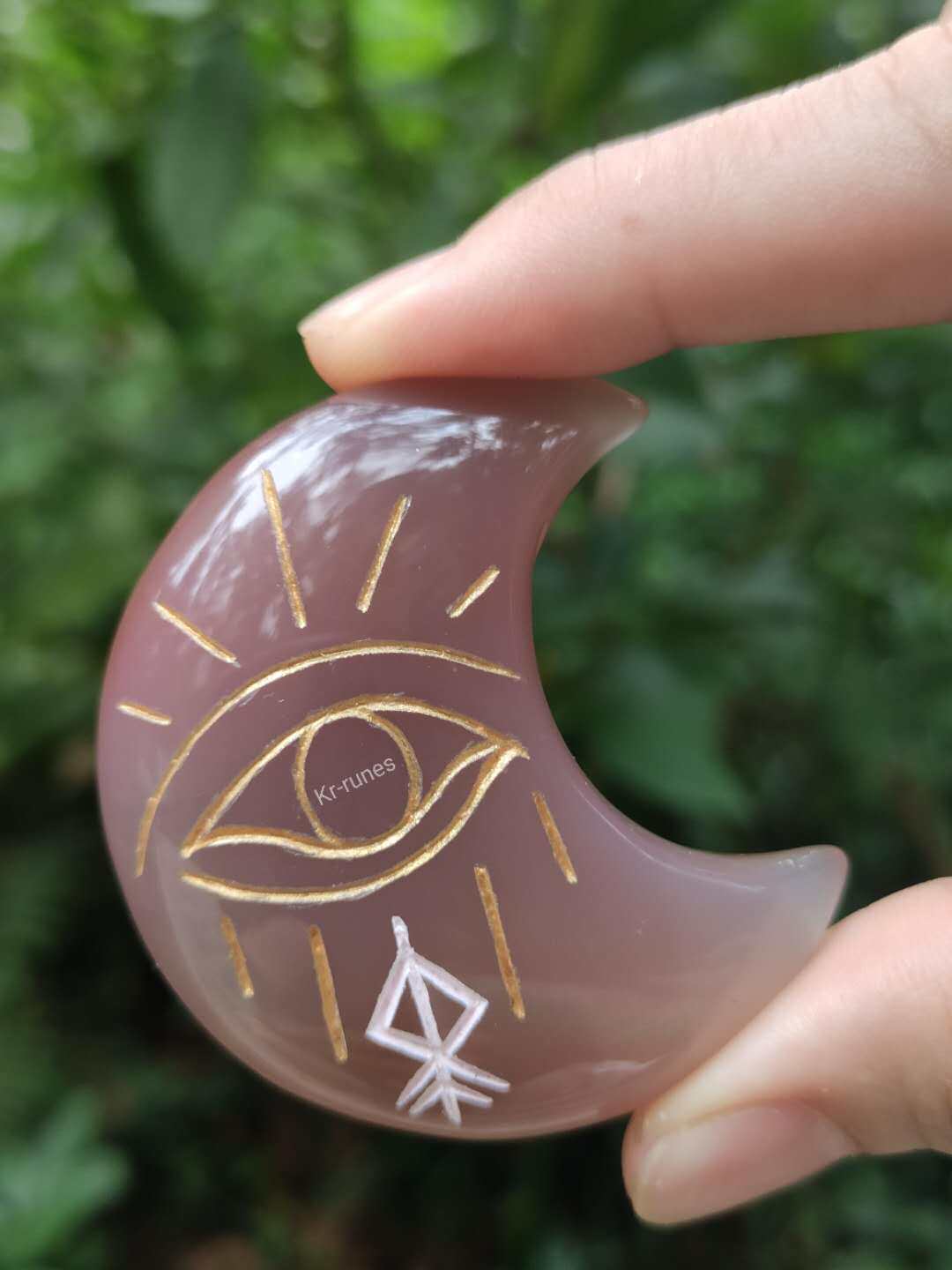 New Products Gypsy Witch Eye Natural Agate Moon Carving Ornament Natural Crystal