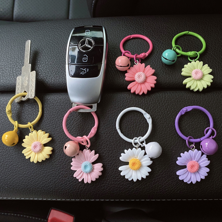 Korean creative net red key chain female car cartoon daisy flower pendant cute ins school bag pendant chain ring