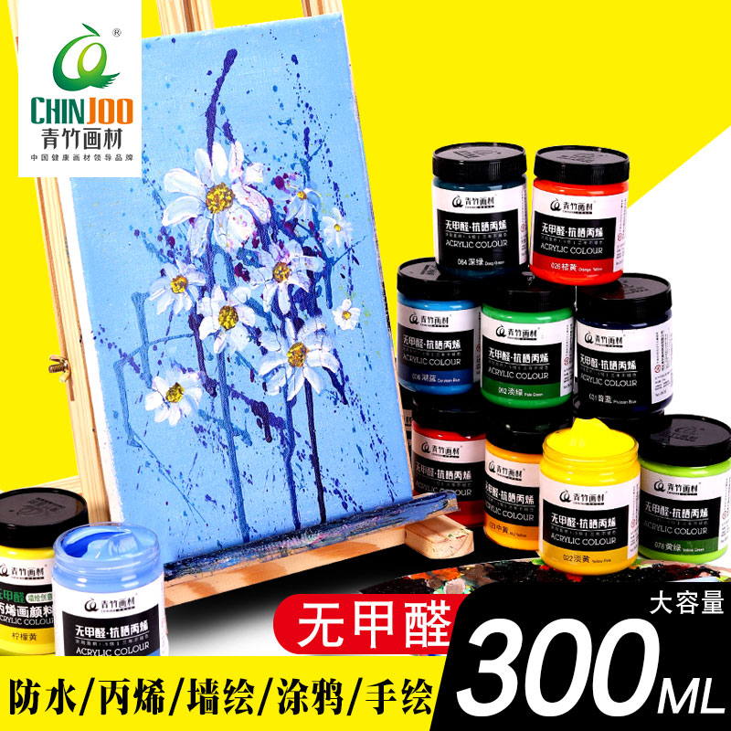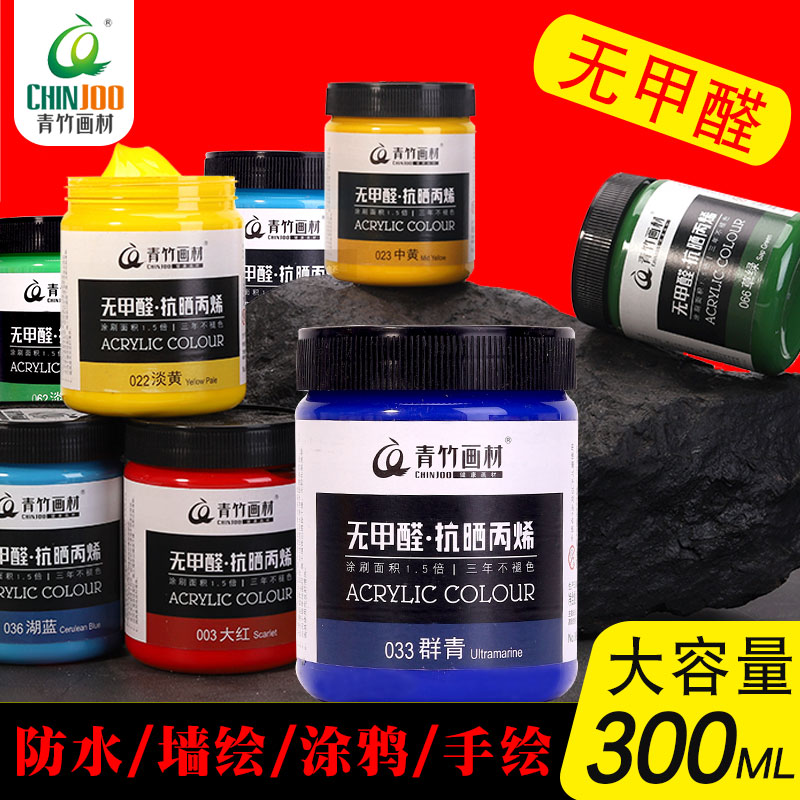 Qingbamboo acrylic pigment 300ML sun resistant acrylic large bottle 300ml waterproof without color painting painting paint painting tools for stone clothes textile interior and outer wall painting