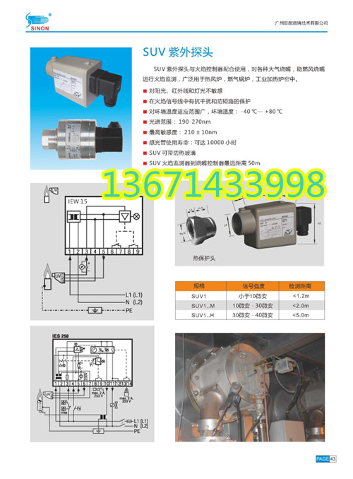 SUV2M UV Flame Detector Sinon Schable Flame Monitor Burner UV Flame Detector
