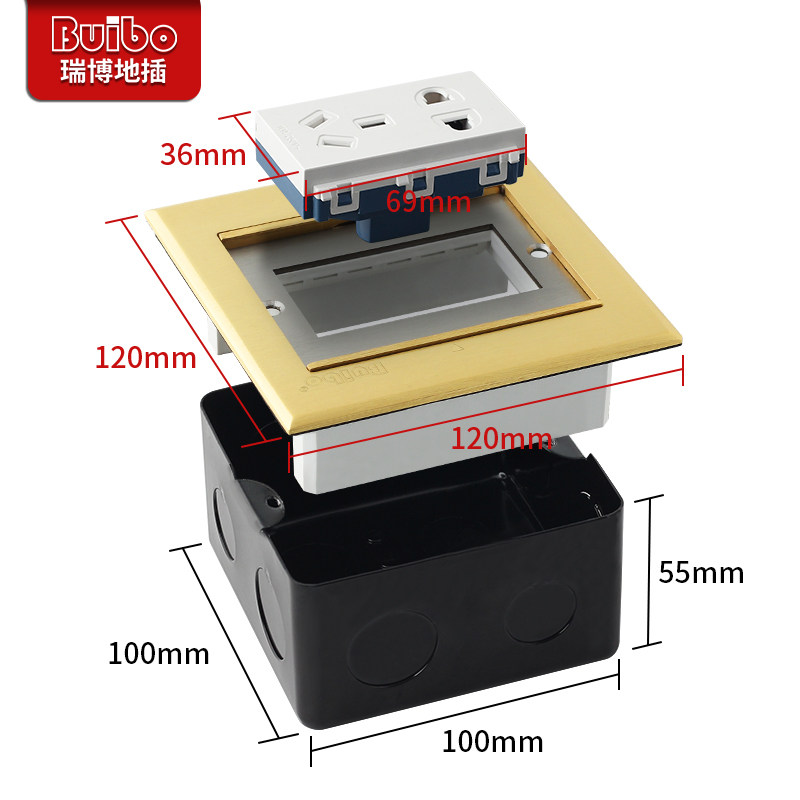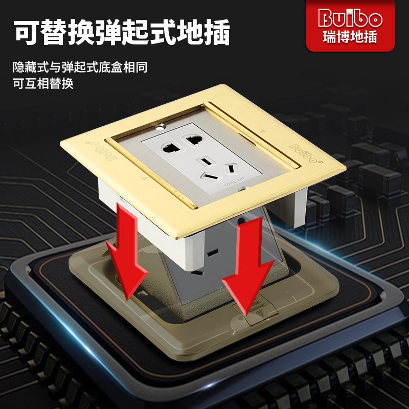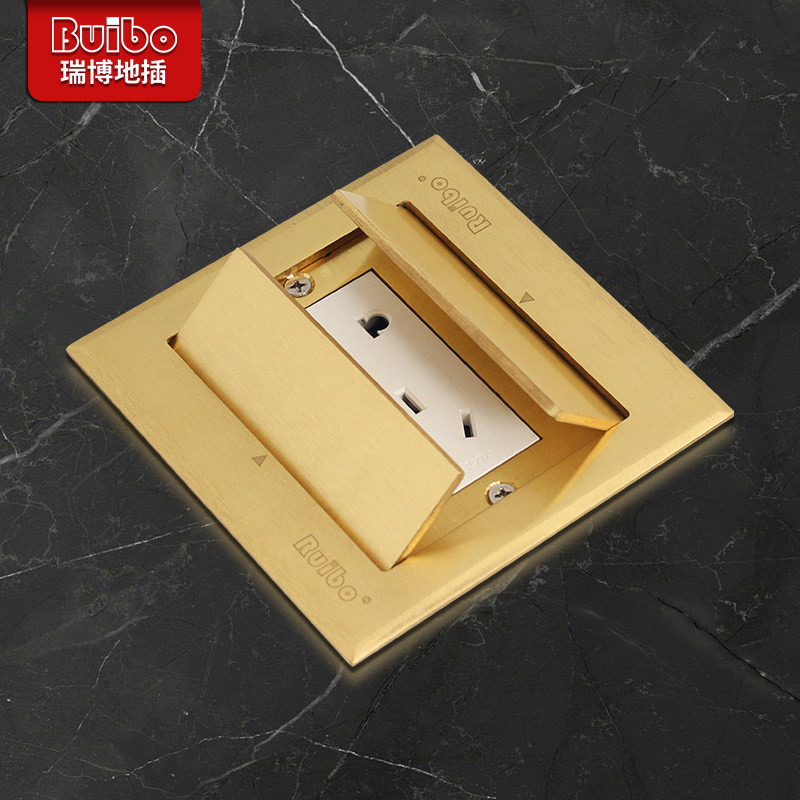 Ruibo Ti socket hidden 411 double open door copper stainless steel network five - hole power outlet box ultra thin