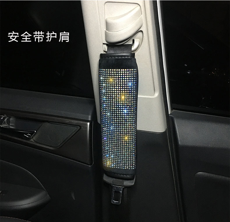 Color Diamond Full Drill Armrest Box Cushion Seat Belt Protection Shoulder Car Interior Suit Platoon Set Hand Brake Sleeve In-car Supplies Women