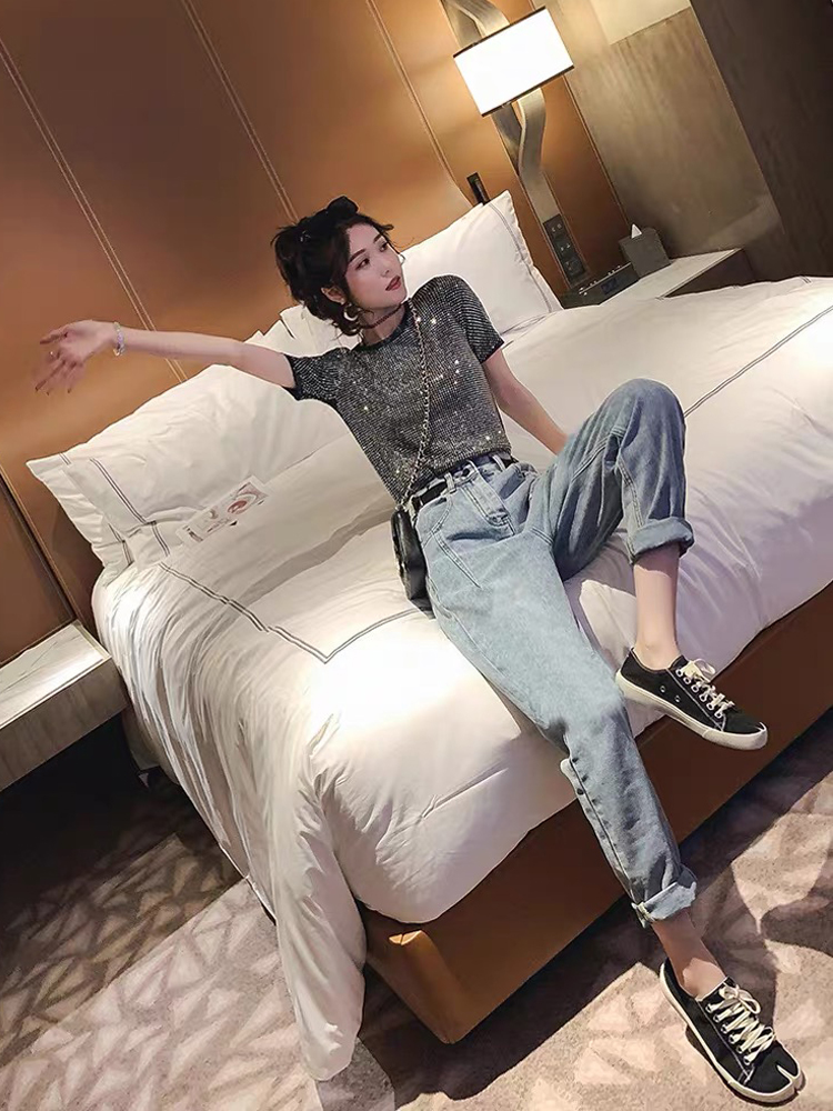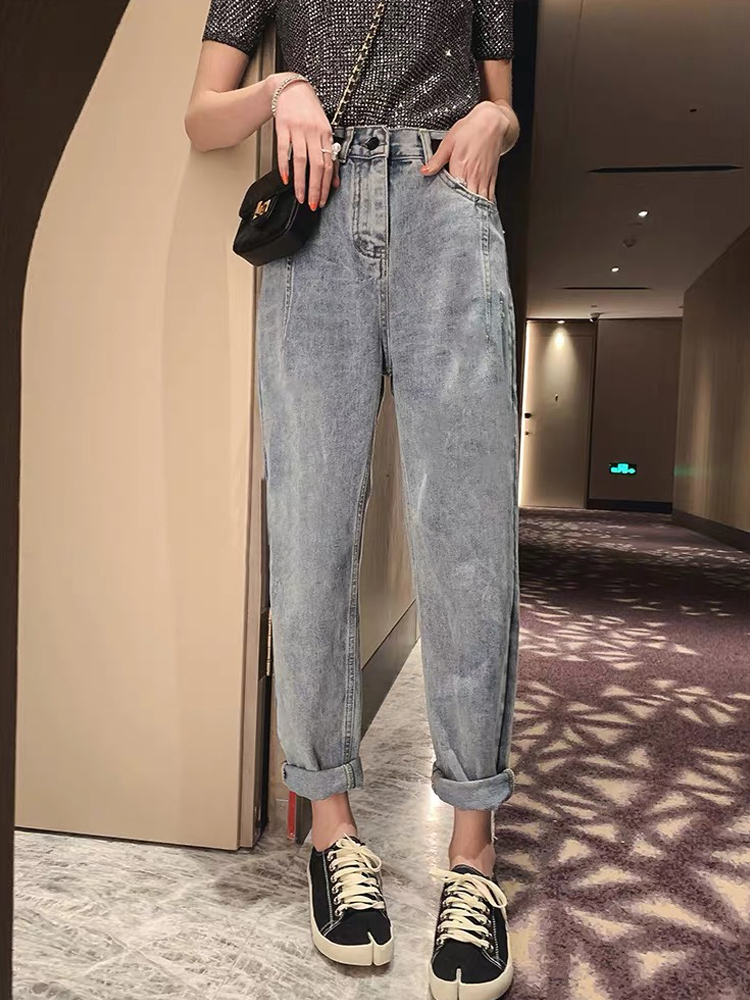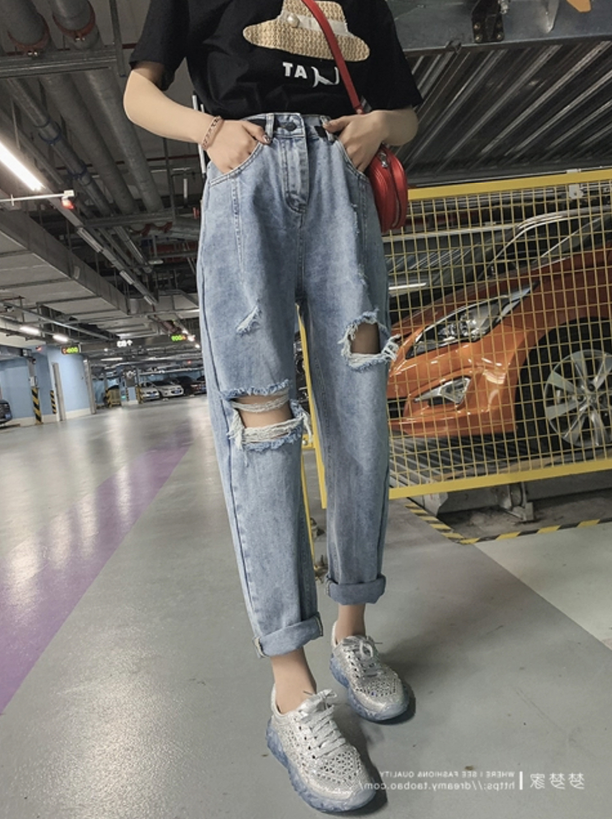 Big size jeans Women 2021 new pants Pants Breaking Hole Easy straight Pants Fat sister 100 hitch skinny old daddy pants