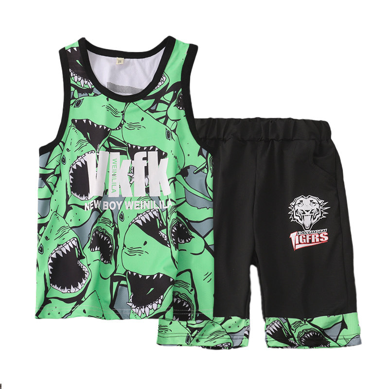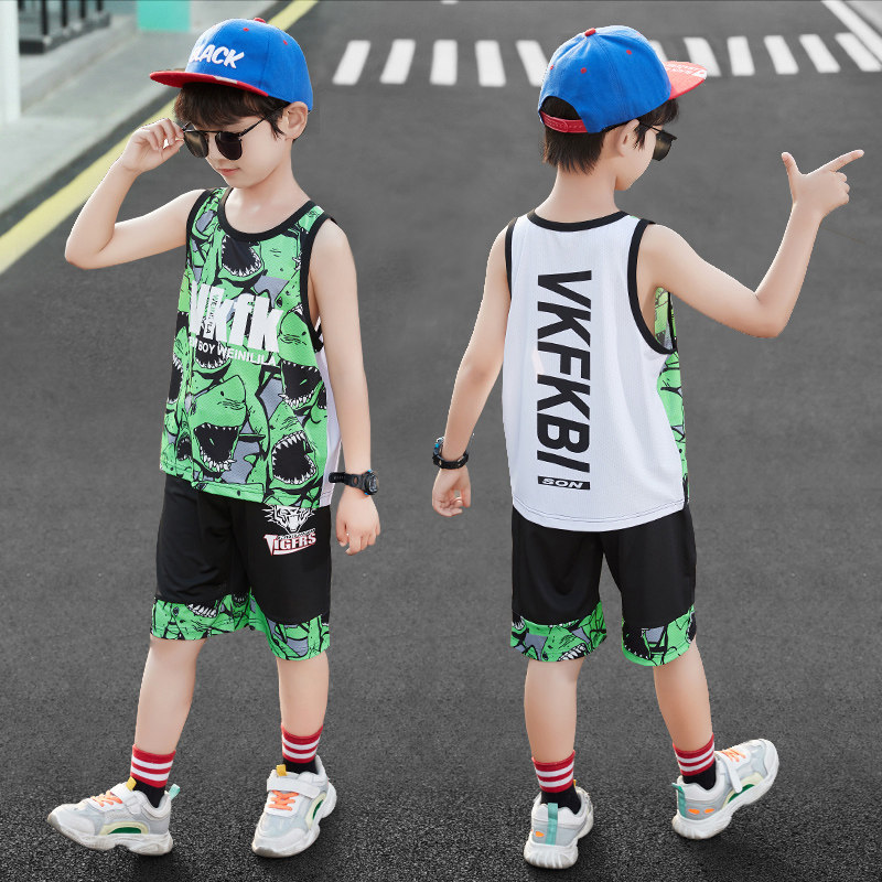 Boy boy summer clothing vest shorts sleeveless suit 2022 new summer children suit foreign pie speed dry Korean version wave