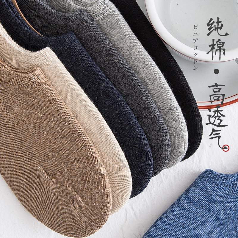 Socks men's summer thin breathable invisible socks men's shallow socks pure cotton invisible summer deodorant sweat-absorbing silicone non-slip
