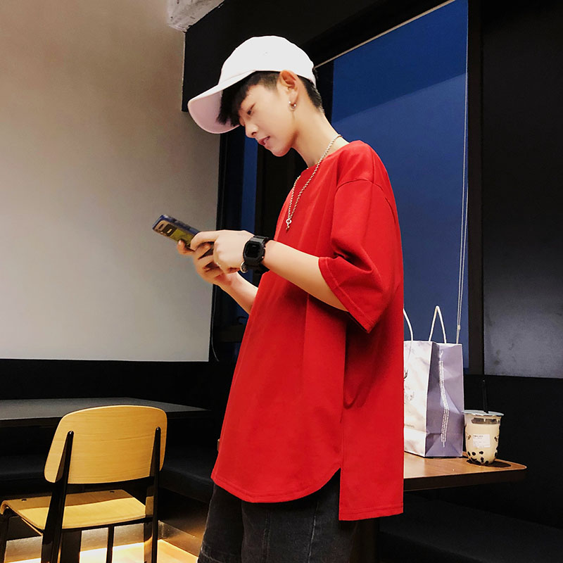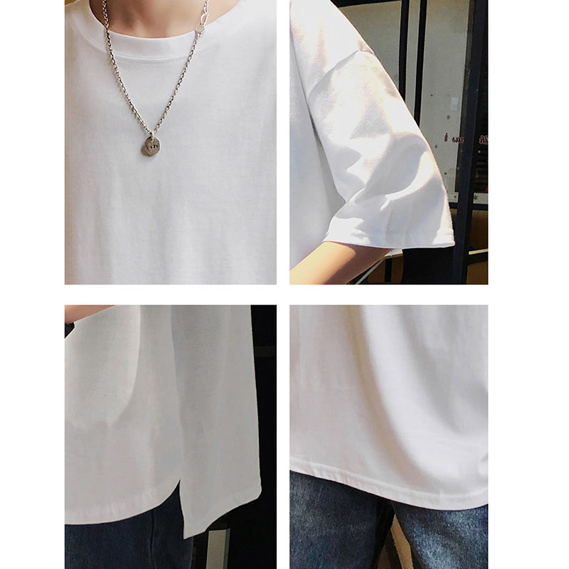White T-shirt male summer pure color loose casual 100 lap clothes Korean version trend 50% sleeve round collar men's blouse