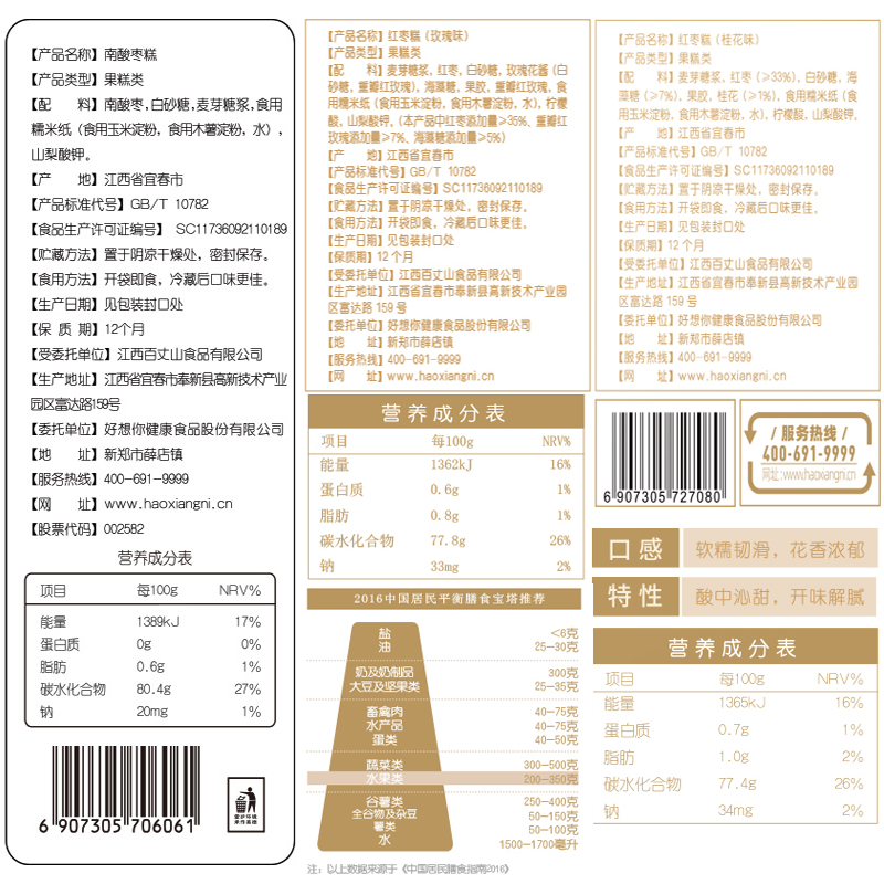 South acid date cake 200g * 2 red date cakes (rose taste) 200g * 2 red date cakes (osmanthus taste) 200g * 2