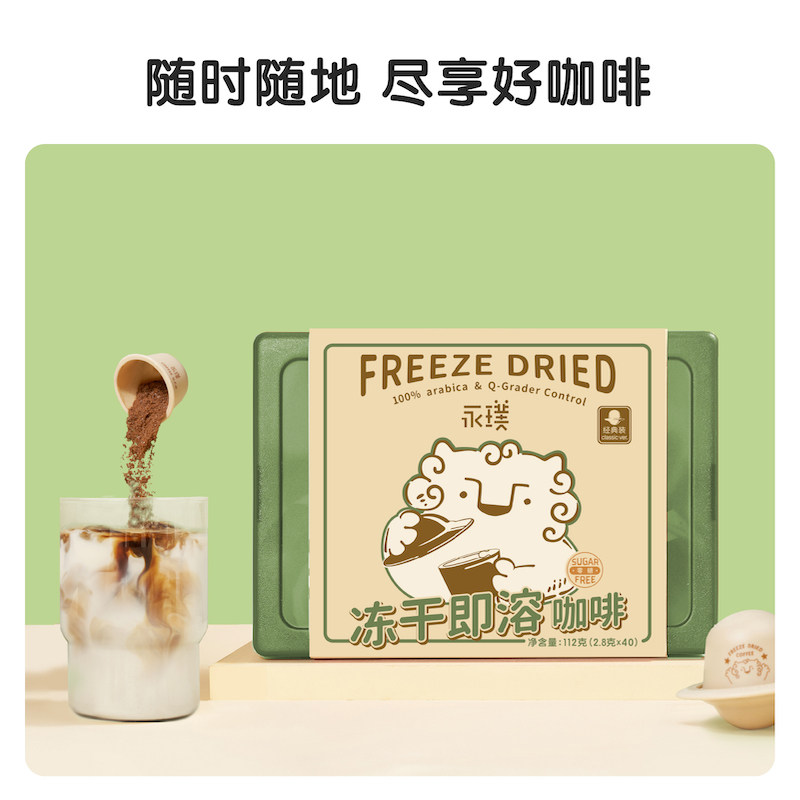Yongpu) flying saucer freeze-dried pure black coffee powder stocked in 3 seconds to dissolve Italian flavor 0 sucrose 2 8g*40 cups