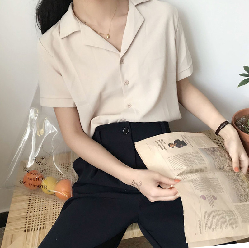 Retro Hong Kong-style design niche light mature shirt ladies chiffon white salt short-sleeved summer thin top women's summer
