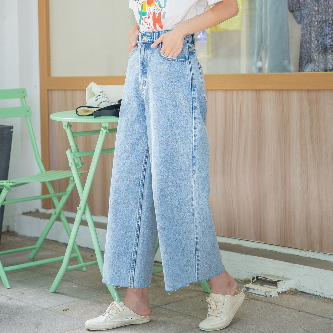 Snow in the snow 2021 New comfort Out of the street minimalist Easy lap Pure Fashion Casual Lady Jeans Wide Pants