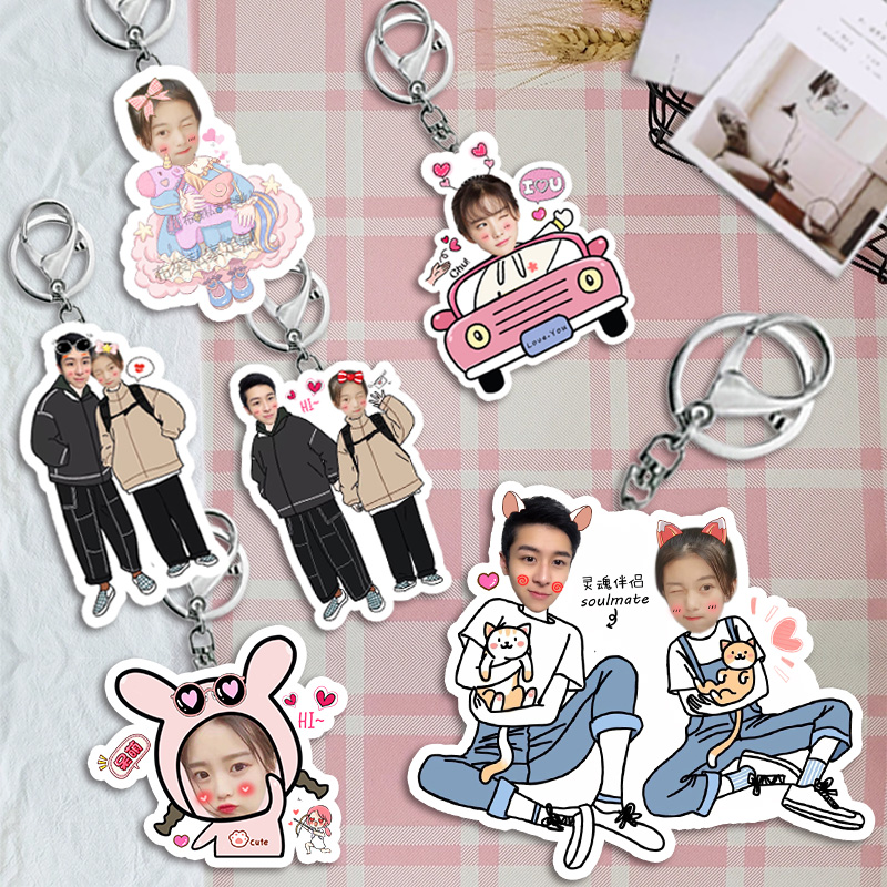 Cute couple keychain custom acrylic diy boyfriend and girlfriend creative bag bag car pendant gift