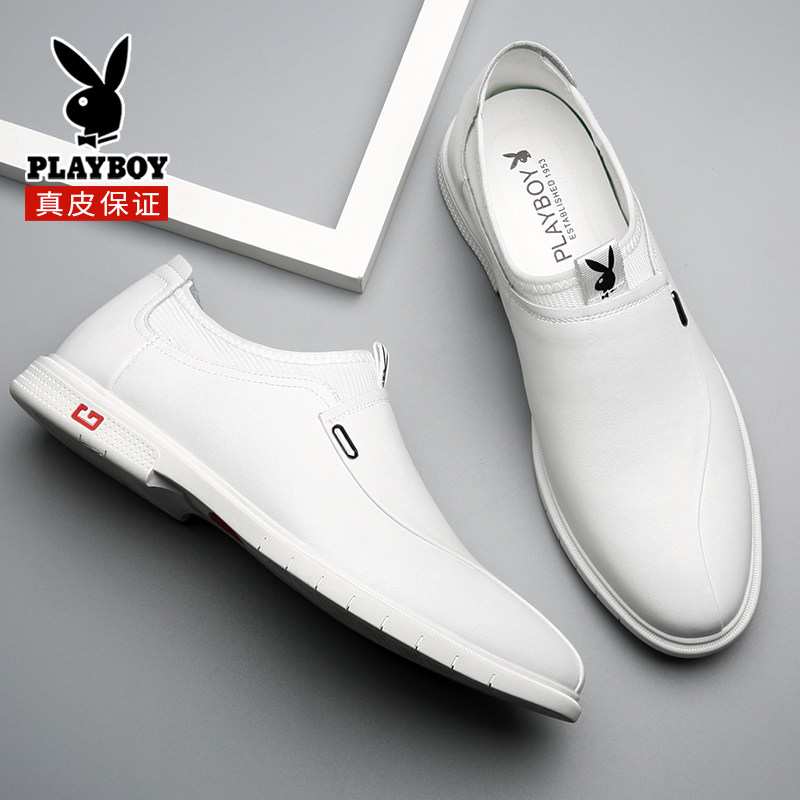 Floral Playboy men's shoes 2022 new Summer Breathable Men Youth Casual Business Positive Dress Genuine Leather White Leather Shoes