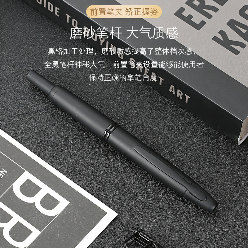 Japan PILOT Baile Capless Black Samurai Pen Pressing Type Frosted Black Rod 18k Gold Tip Ink Pen Adult Calligraphy Practice WordIng Enterprise Business Gift Set FC-1800R