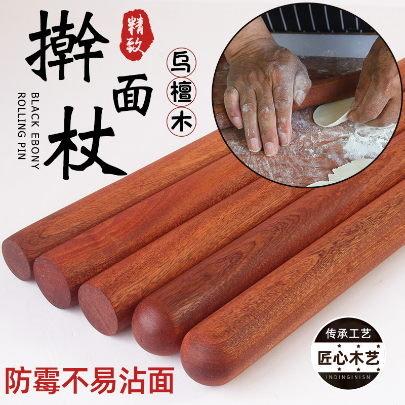 Ebony sandalwood rolling noodle stick solid wood rolling noodle stick rush noodle stick noodle large household increase thick small rolling skin open crisp stick