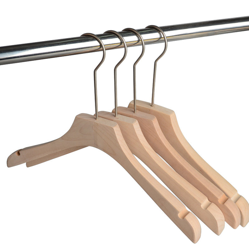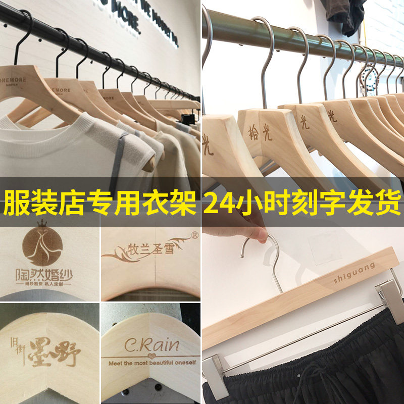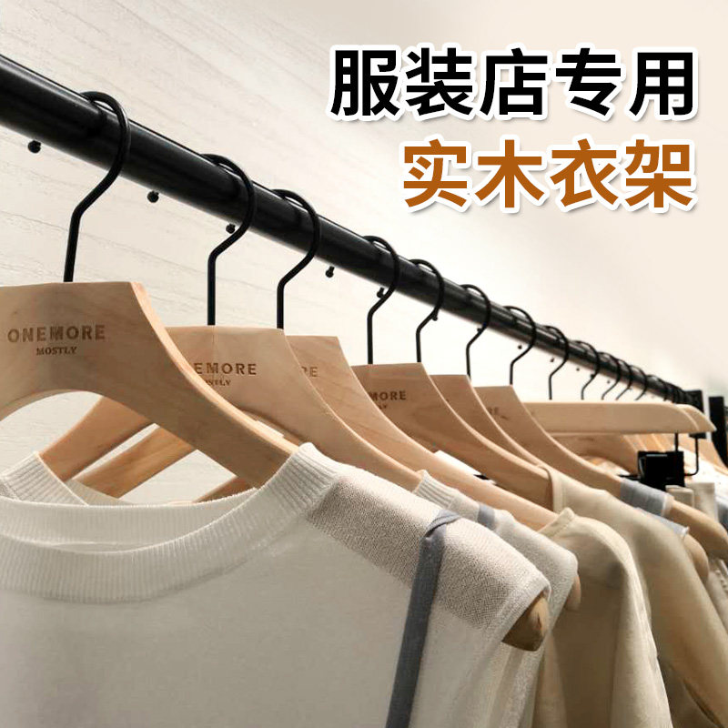 Clothing store special custom logo solid wood high-end women's anti-slip clothes support hanging garment frame wooden clothes