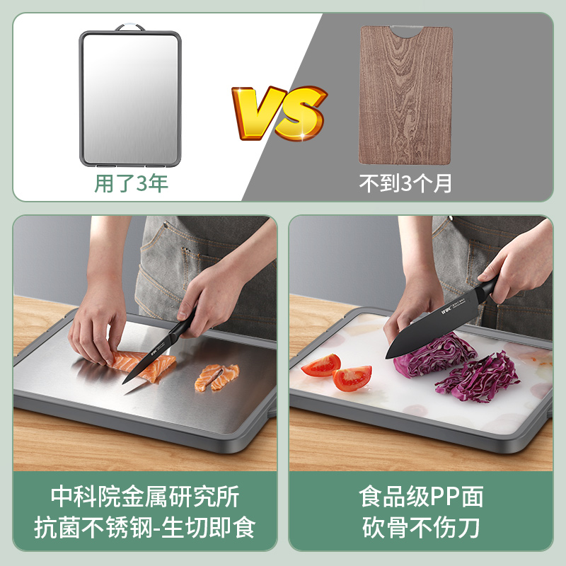 Thickened antibacterial cutting board small size can stand (304 stainless steel surface pp surface) thickened antibacterial cutting board medium size can stand (double-sided pp silicone) thickened antibacterial cutting board medium size can stand (