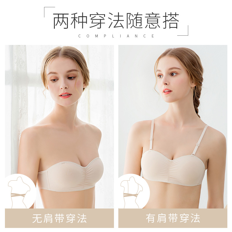 Unstrapped underwear woman without steel ring small bras gathering anti-skid summer thin wear wipes without trace stealth bra
