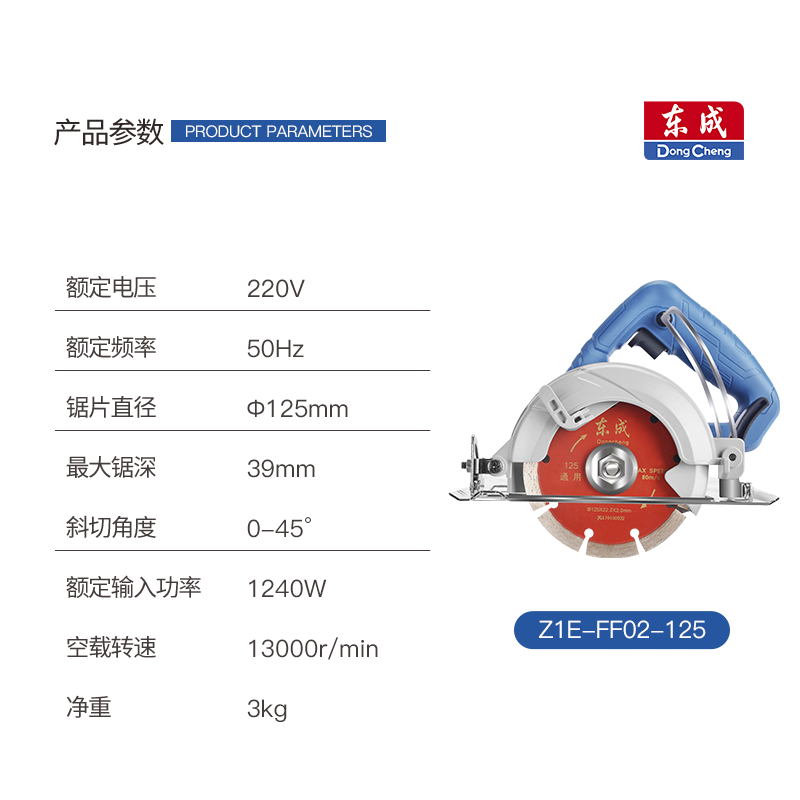 Power 1240W Z1E-FF02-125 (saw blade to be purchased) Power 1600W Z1E-FF-125 (saw blade to be purchased) Power 1240