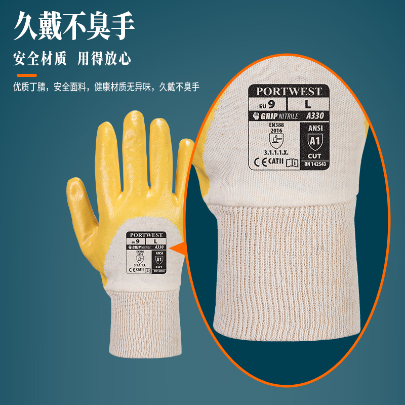 Portwest anti-slip anti-slip anti-tear wear and tear wear light Heavy Rene Coat Breathable Cotton Gloves Knit Cuffs