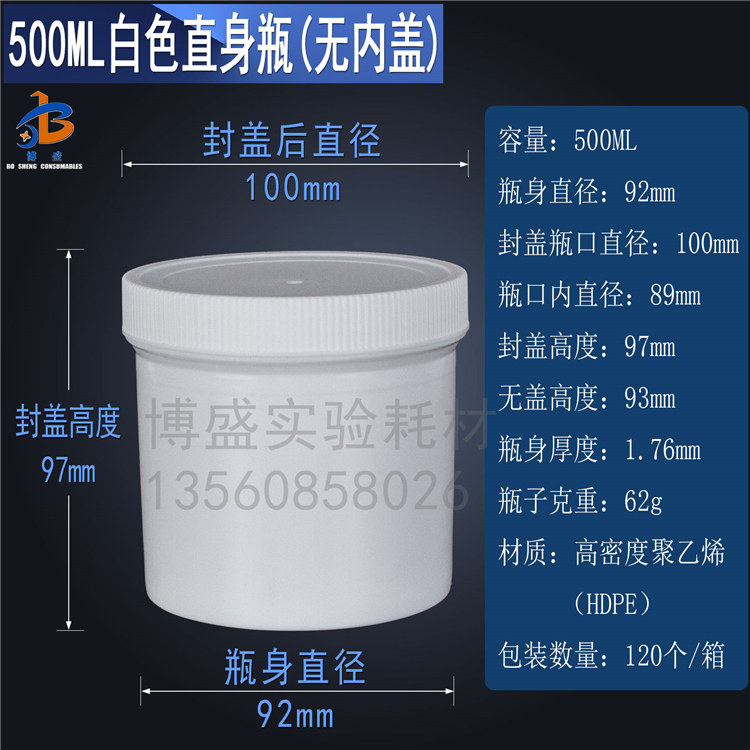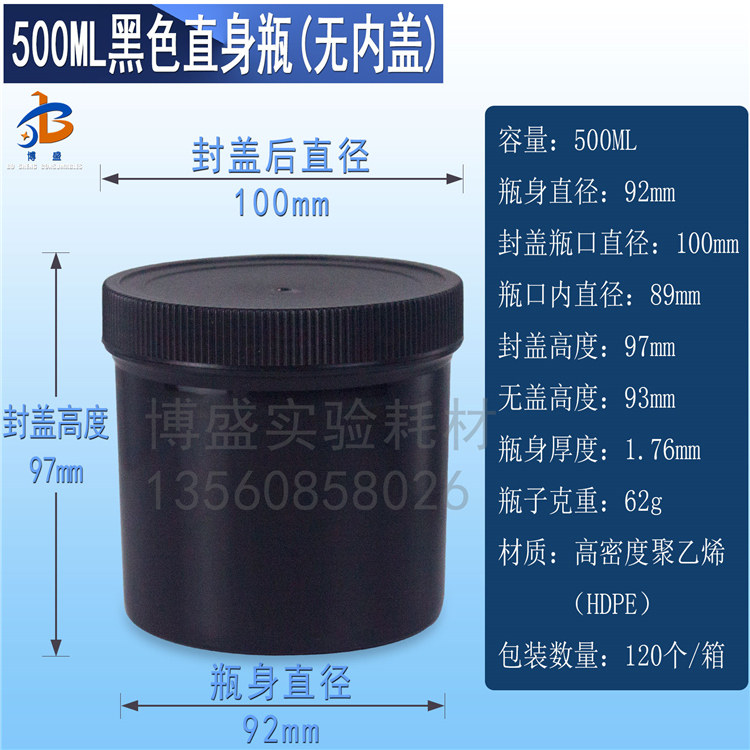 500ML plastic straight bottle PE sample bottle packed bottle resistant acid base ink bottle white black transparent tank