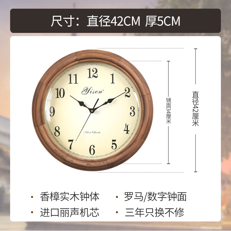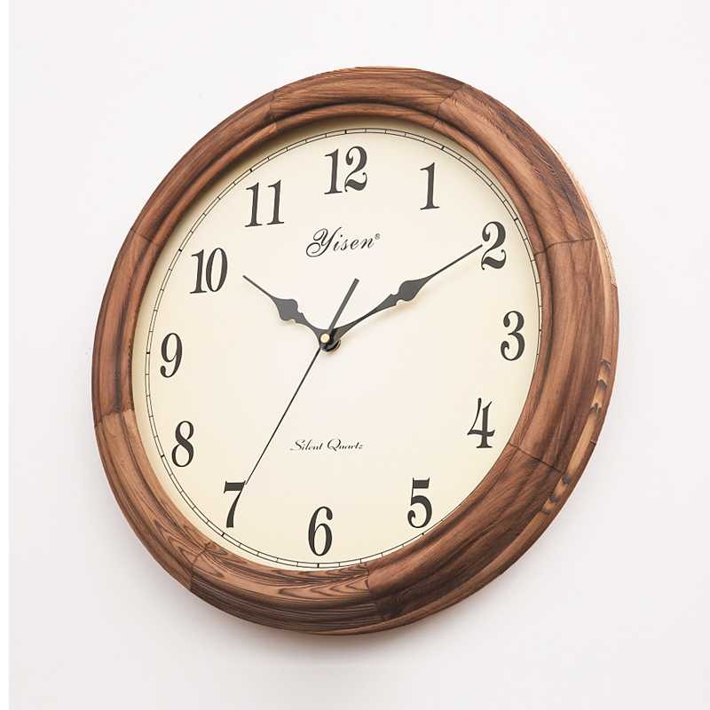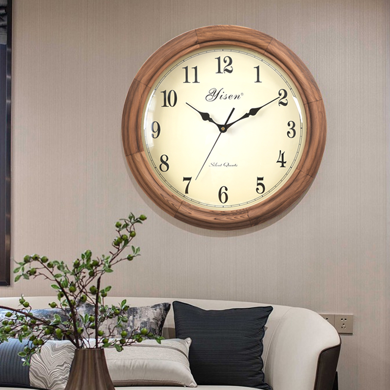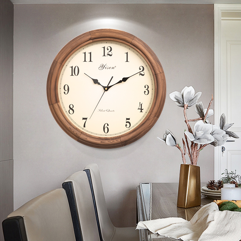 Eurostyle scented wood round hanging bell creative retro living room mute 16 inch clock fashion minimalist quartz clock