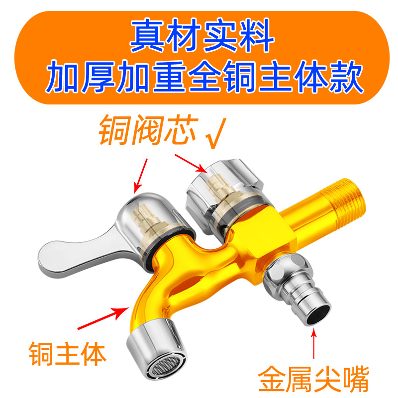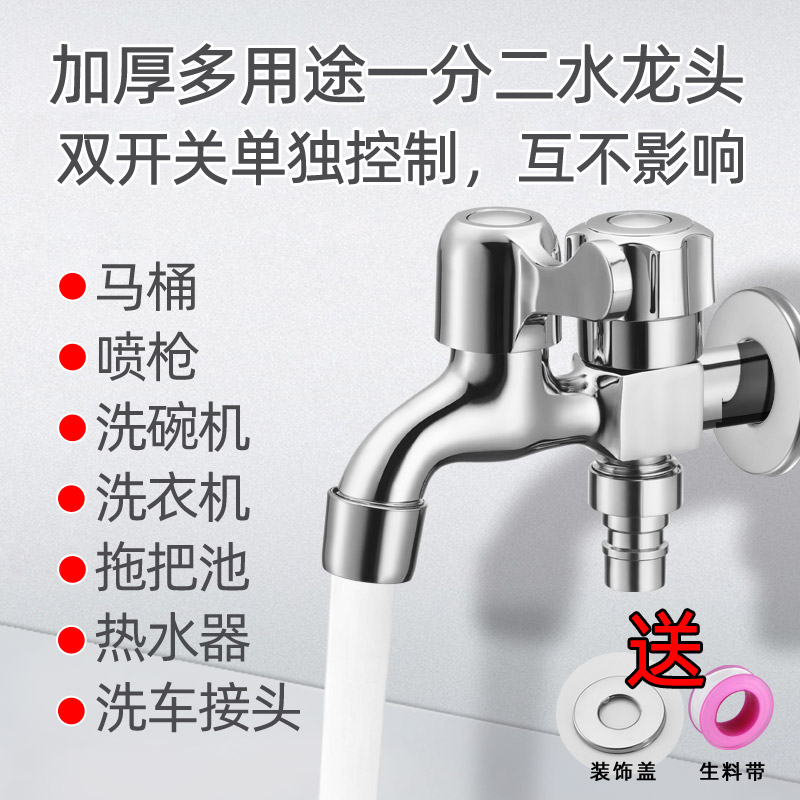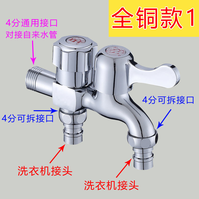 Thickened double faucet washing machine inlet pipe joint shunt one point two external joint 1 dual-use switch 2 out