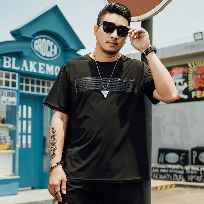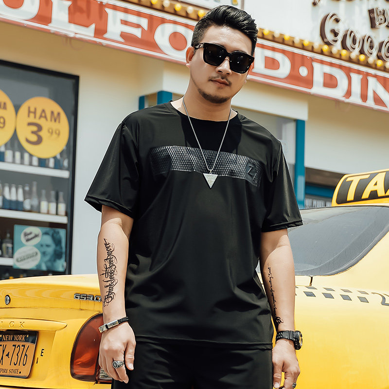 Summer large size ice silk t-shirt men's short-sleeved sweatshirt plus fat plus loose quick-drying clothes half-sleeved fat guy shirt