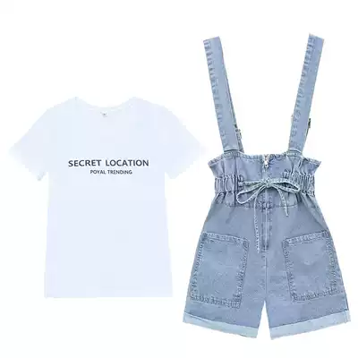 Age-reduced jeans hug baby bag pants women's summer 2021 New High waist suspenders tide short pants