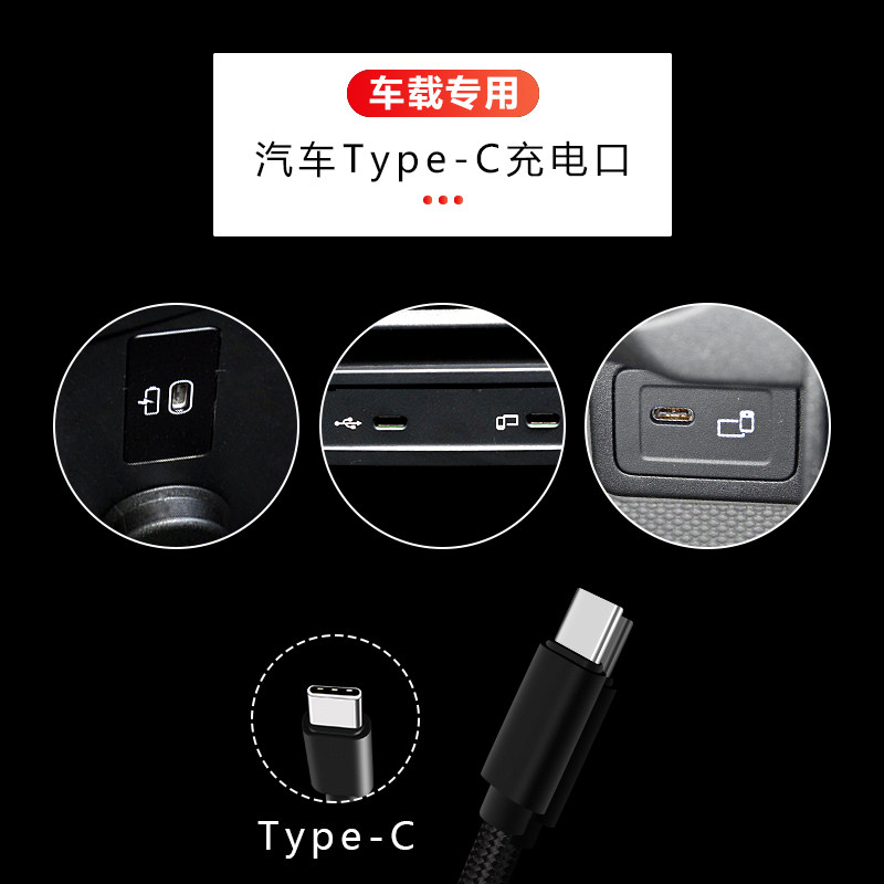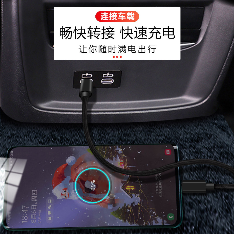 Type-C mobile phone in-car straight wire (braided section) deep black Apple mobile phone on-board straight wire (braided net payment) Deep black two-in-one (Type-C Apple mobile phone) on-board straight