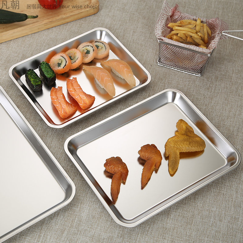 Japanese flat plate 304 stainless steel rectangular plate barbecue plate sushi dessert plate Japanese and Korean shallow plate tray