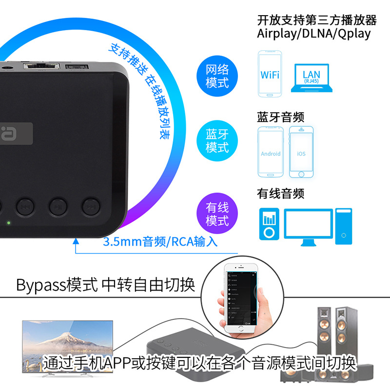 WiFi streaming music box Multi room Internet Audio Play Fiber Aux Wireless Bluetooth Receiver WR320