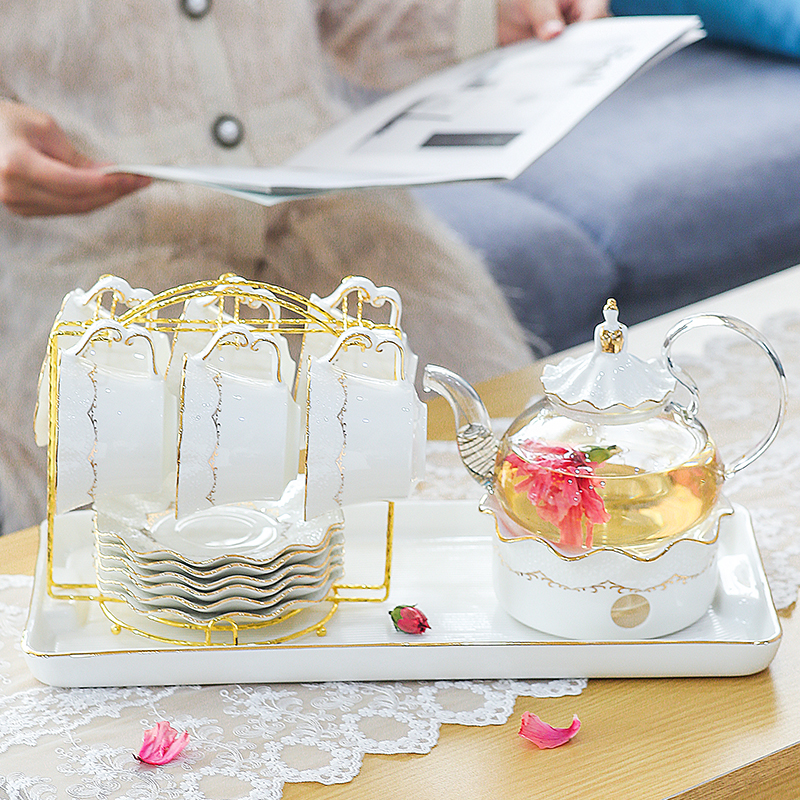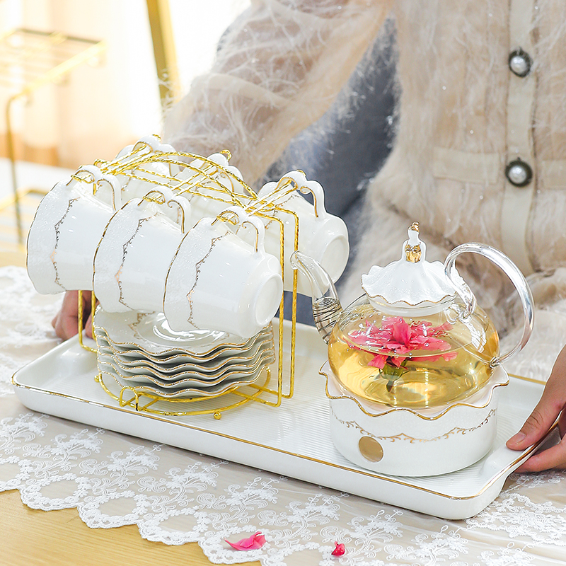 ceramic tea set light luxury home living room simple kung fu teacup high-end flower teapot cup complete set with tray