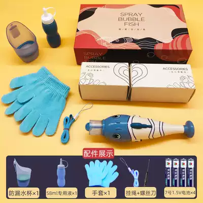 Blue-Smoke bubble fish Blue Smoke bubble stick Pink smoke bubble gun Blue-smoke bubble gun Blue special gloves 1 pair of pink special gloves 1 pair of smoke bubble water 1 bottle atomizer 1 5