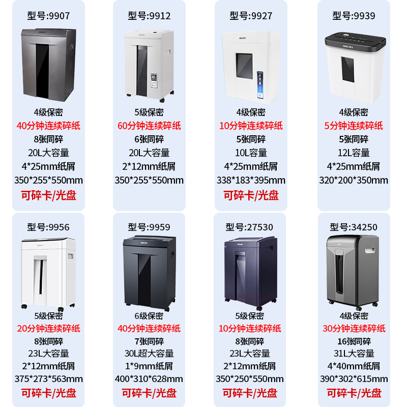 9939 white shredders 4 levels Confidential 5 min Continuous shredders 5 sheets of the same shredders 12L Large capacity 9927 Shredder 4 Level Confidential 10 min Continuous shredders 5 paper Shredders 10L Large capacity