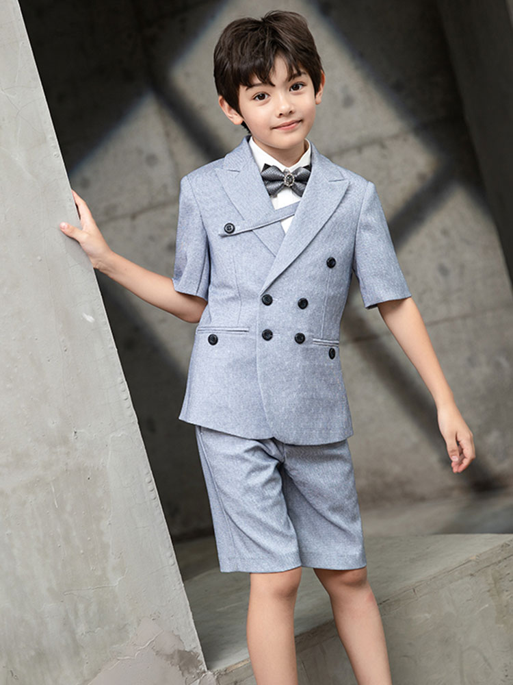 Children's suit suit summer catwalk boy small suit flower girl dress handsome short-sleeved host piano performance clothing