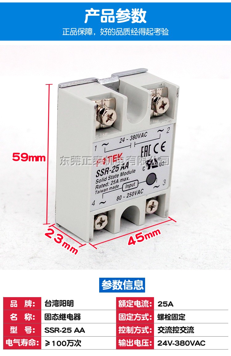 Originally installed FOTEK Yangming individual solid-state relay SSR-25AA AC control AC 24-380VAC