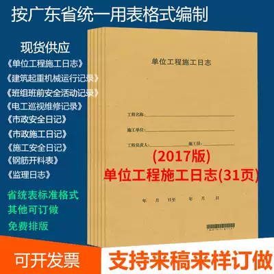 Construction log national general version 10 volumes(no requirements for the format A4 size ) Unit project construction log (Guangdong version 10 volumes) Electrician inspection record 10 volumes Construction safety diary(Guangdong version 10 volumes) Construction safety diary (Guangdong version 10 volumes) Construction safety diary (Guangdong version 10 volumes) Construction safety diary (Guangdong version 10 volumes)